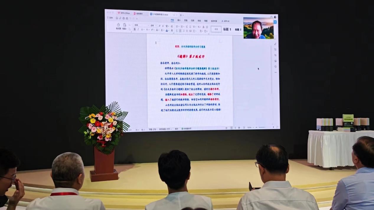 中國科學院數學與系統科學研究院研究員丁彥恒因學術會議與發布會時間沖突,不能親自到現場,特地錄制了一段視頻。丁教授說:“學習數學,除知識點外,需要通過練習融會貫通,山東科學技術出版社出版的《吉米多維奇數學分析習題解題解》給學生提供了極大的幫助,堪稱數學分析的課外導師。”
