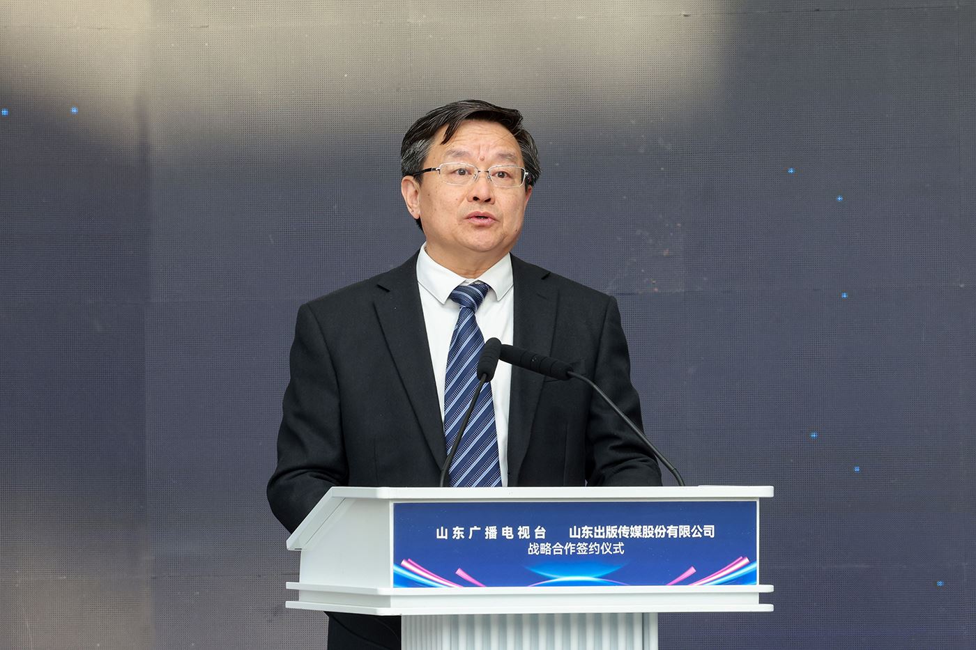 劉文強(qiáng)在致辭中表示,山東廣電與出版集團(tuán)同為山東省文化產(chǎn)業(yè)的中流砥柱,曾合作打造了《北方有佳人》《大染坊》《闖關(guān)東》等多部璀璨力作,有良好深厚的合作基礎(chǔ)。此次簽約是深入貫徹落實(shí)習(xí)近平文化思想和黨的二十屆三中全會精神的生動(dòng)實(shí)踐,也是推動(dòng)我省文化產(chǎn)業(yè)、文化事業(yè)高質(zhì)量發(fā)展的有力舉措,打開了合作新篇章,為雙方帶來新的發(fā)展機(jī)遇,也為山東文化強(qiáng)省建設(shè)注入新的活力。未來,雙方將聯(lián)合打造更多思想精深、藝術(shù)精湛、制作精良的產(chǎn)品;攜手搭建技術(shù)共享共建的戰(zhàn)略平臺,共同探索融合發(fā)展新模式,培育新質(zhì)生產(chǎn)力;高標(biāo)準(zhǔn)、高起點(diǎn)聯(lián)合打造具有廣泛影響力的國際傳播平臺,講好中國故事山東篇,傳播齊魯文化好聲音。