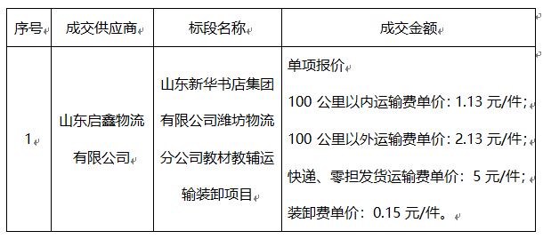 山東新華書店集團有限公司濰坊物流分公司教材教輔運輸裝卸項目中標結果公告