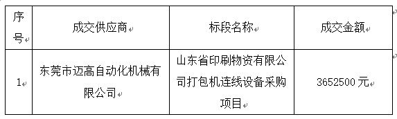 山東省印刷物資有限公司打包機連線設備采購項目中標公告