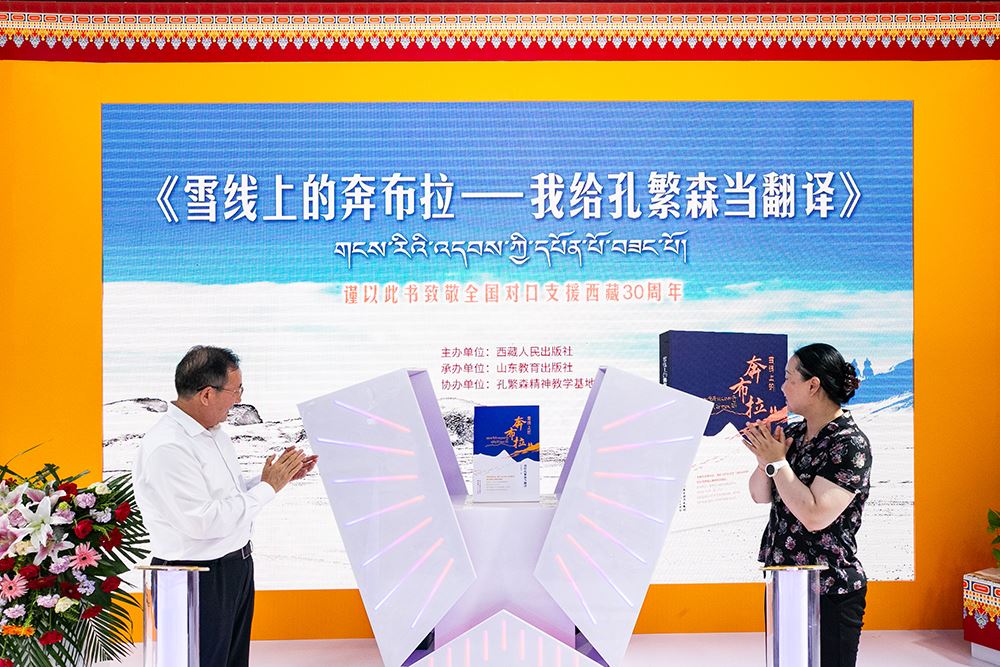 獻(xiàn)禮全國(guó)對(duì)口支援西藏30周年的主題出版力作《雪線上的奔布拉——我給孔繁森當(dāng)翻譯》(山東教育出版社、西藏人民出版社聯(lián)合出版)新書分享會(huì)在第32屆書博會(huì)會(huì)場(chǎng)西藏展區(qū)召開。7月27日下午,獻(xiàn)禮全國(guó)對(duì)口支援西藏30周年的主題出版力作《雪線上的奔布拉——我給孔繁森當(dāng)翻譯》(山東教育出版社、西藏人民出版社聯(lián)合出版)新書分享會(huì)在第32屆書博會(huì)會(huì)場(chǎng)西藏展區(qū)召開。