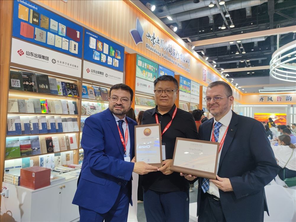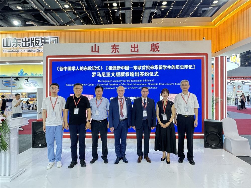 6月20日下午,山東教育出版社與羅馬尼亞歐洲思想出版社在第30屆北京國際圖書博覽會場館共同舉行《新中國學人的東歐記憶》《相遇新中國——東歐首批來華留學生的歷史印記》羅馬尼亞文版權輸出簽約儀式。本次版權輸出是山東教育出版社和歐洲思想出版社聯合成立的羅馬尼亞中國主題編輯部策劃運作的中羅出版合作又一碩果。
