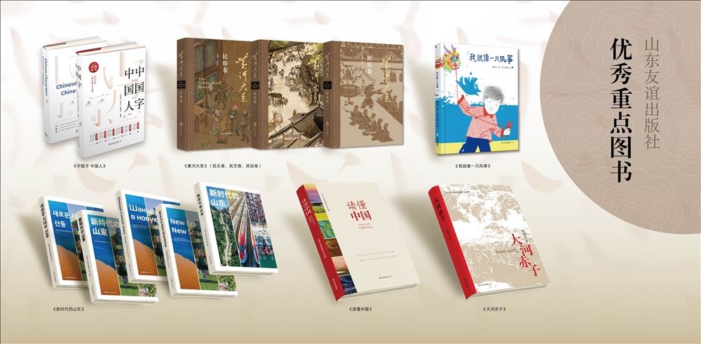 此次山東友誼出版社攜近200種重點圖書和新書參展,圖書類別涵蓋主題出版、人文社科、傳統文化、兒童文學、少兒繪本、語言學習。重點展示圖書包括《中國字 中國人》《黃河大系》《我就像一只風箏》《大河赤子》《新時代的山東》,其中《黃河大系》《我就像一只風箏》《大河赤子》等都是首次在國內書展亮相。